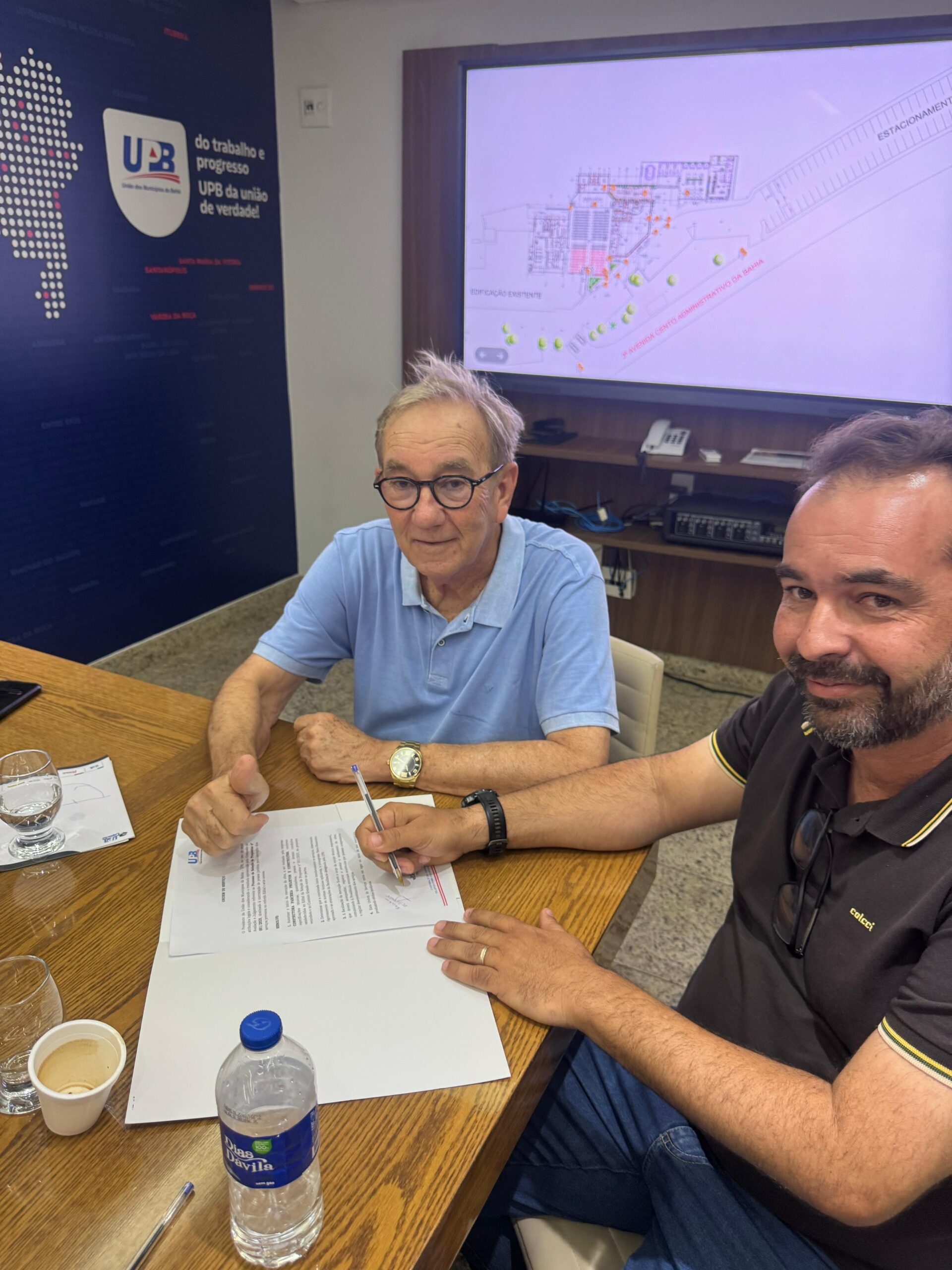 O presidente da União dos Municípios da Bahia (UPB), Wilson Cardoso, assinou neste sábado (15) o contrato com a empresa responsável pela execução das obras de reforma e ampliação do auditório da entidade, além da construção de novos espaços administrativos e funcionais na sede da UPB, localizada no Centro Administrativo da Bahia (CAB), em Salvador.