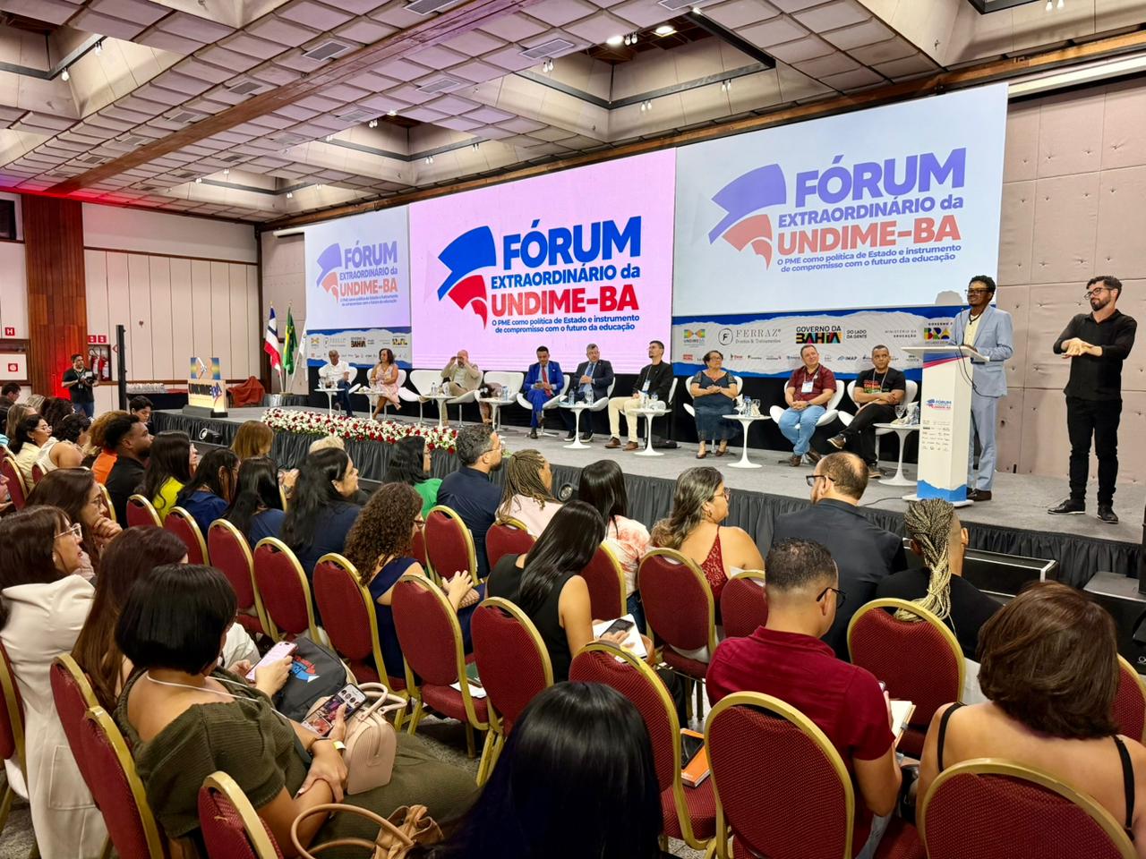 Nesta terça-feira (07/04) , a União dos Municípios da Bahia (UPB) marcou presença no Fórum Extraordinário da Undime Bahia, realizado em Salvador, reforçando o compromisso com o fortalecimento da educação pública e destacando avanços importantes na alfabetização nos municípios baianos. Representando a entidade na mesa de abertura, o diretor da UPB e prefeito de Antônio Cardoso, Jocivaldo Bispo, teve participação de destaque ao apresentar resultados e experiências exitosas da gestão municipal.