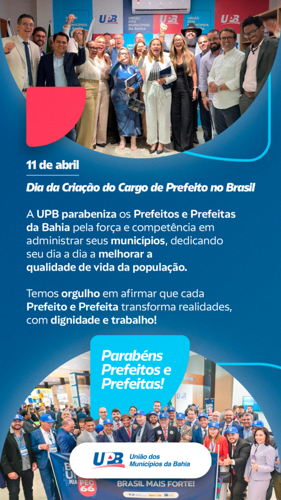 A UPB parabeniza todos os prefeitos e prefeitas da Bahia e acredita que a missão do gestor municipal é fazer o desenvolvimento chegar a cada munícipe, sem medir esforços para entregar mais infraestrutura, saúde, educação e manter os serviços em dia, acolhendo e cuidando, sobretudo dos que mais precisa.